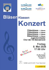 Konzert der Bläserklassen, Flötenklassen, Chor und Jugendorchester in Steinabrückl.